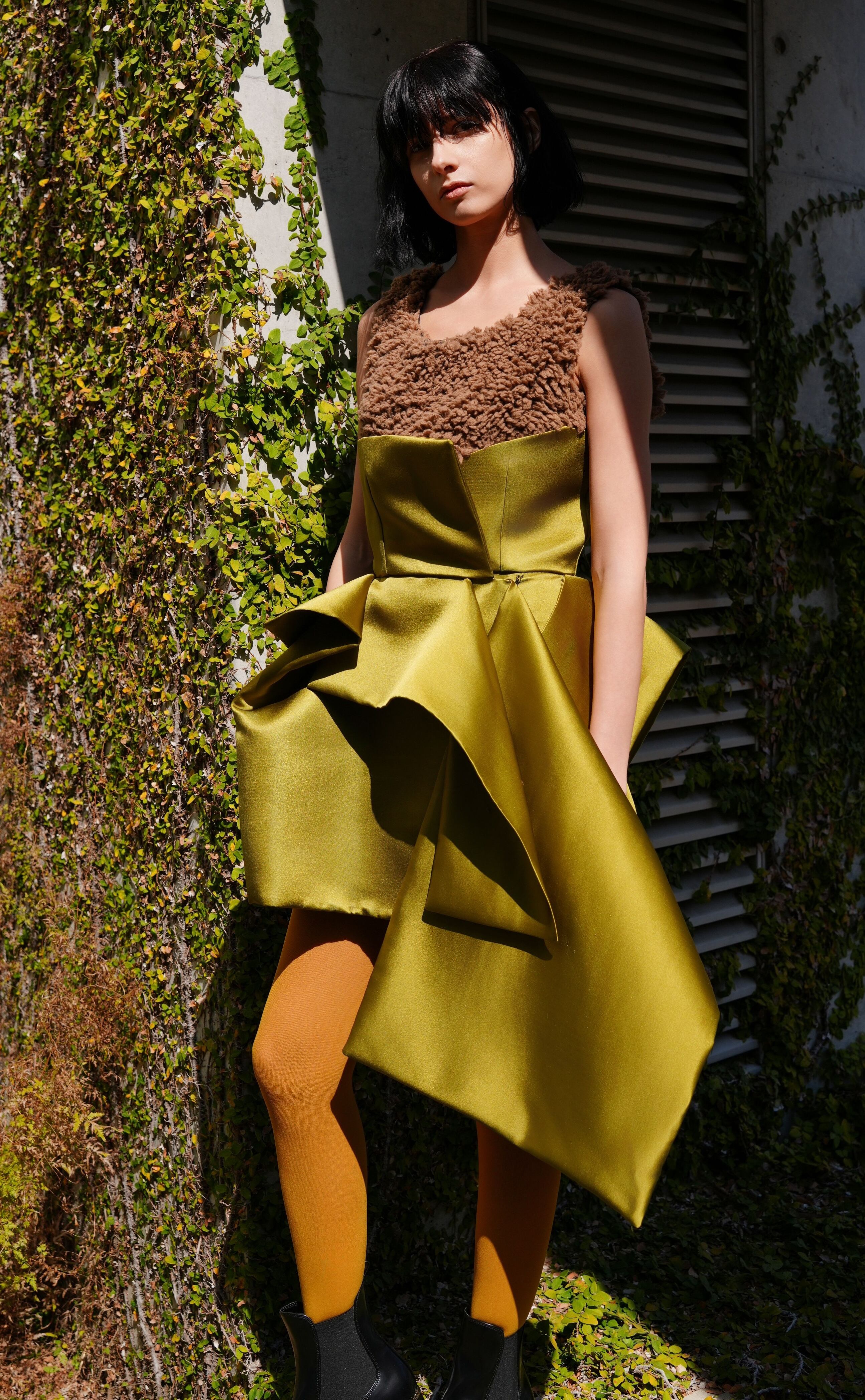 ・しっかりハリのあるサテン素材のドレス。
