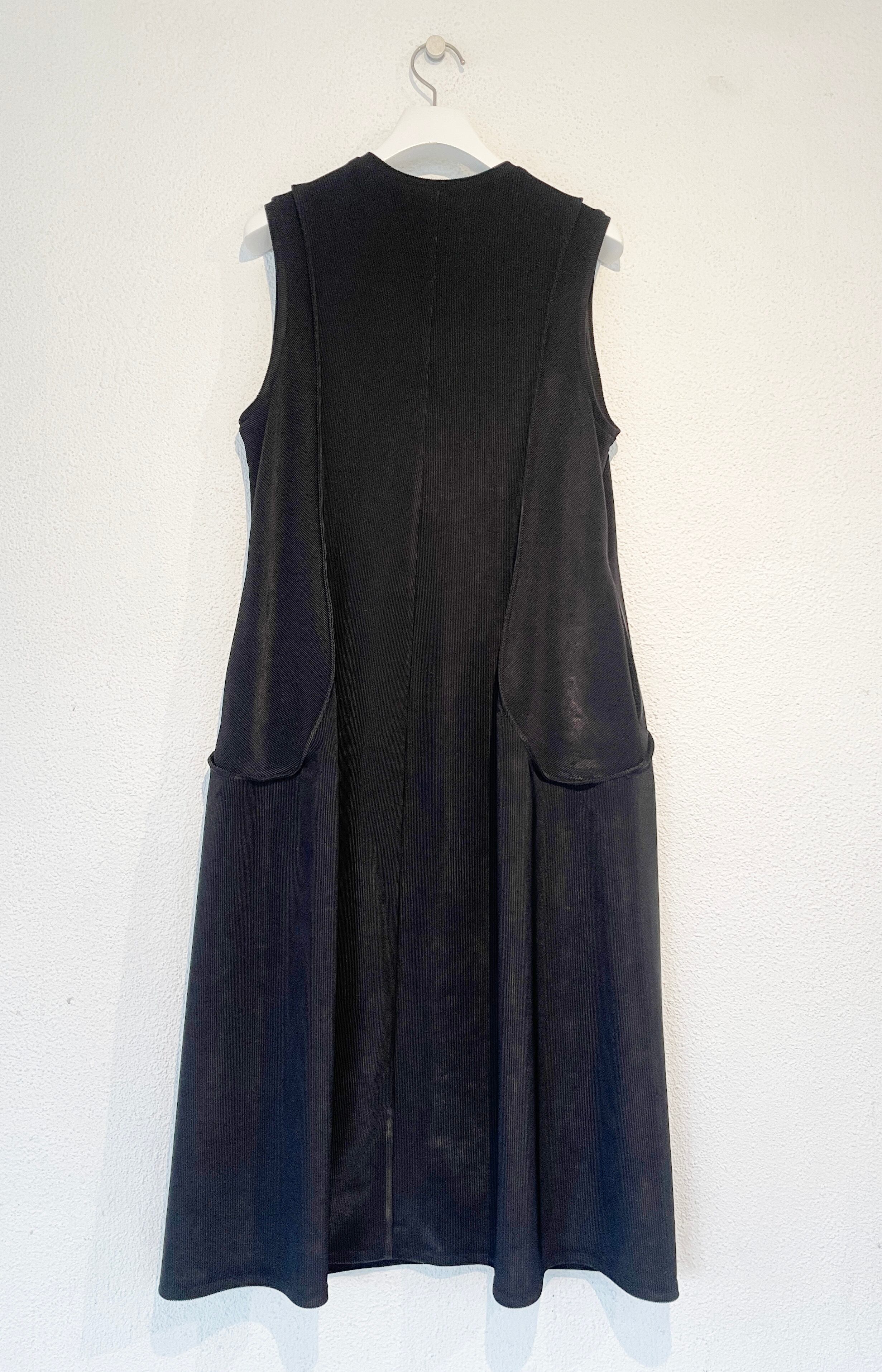 ・細い畝のあるトリコットピケ素材のロングジレ。